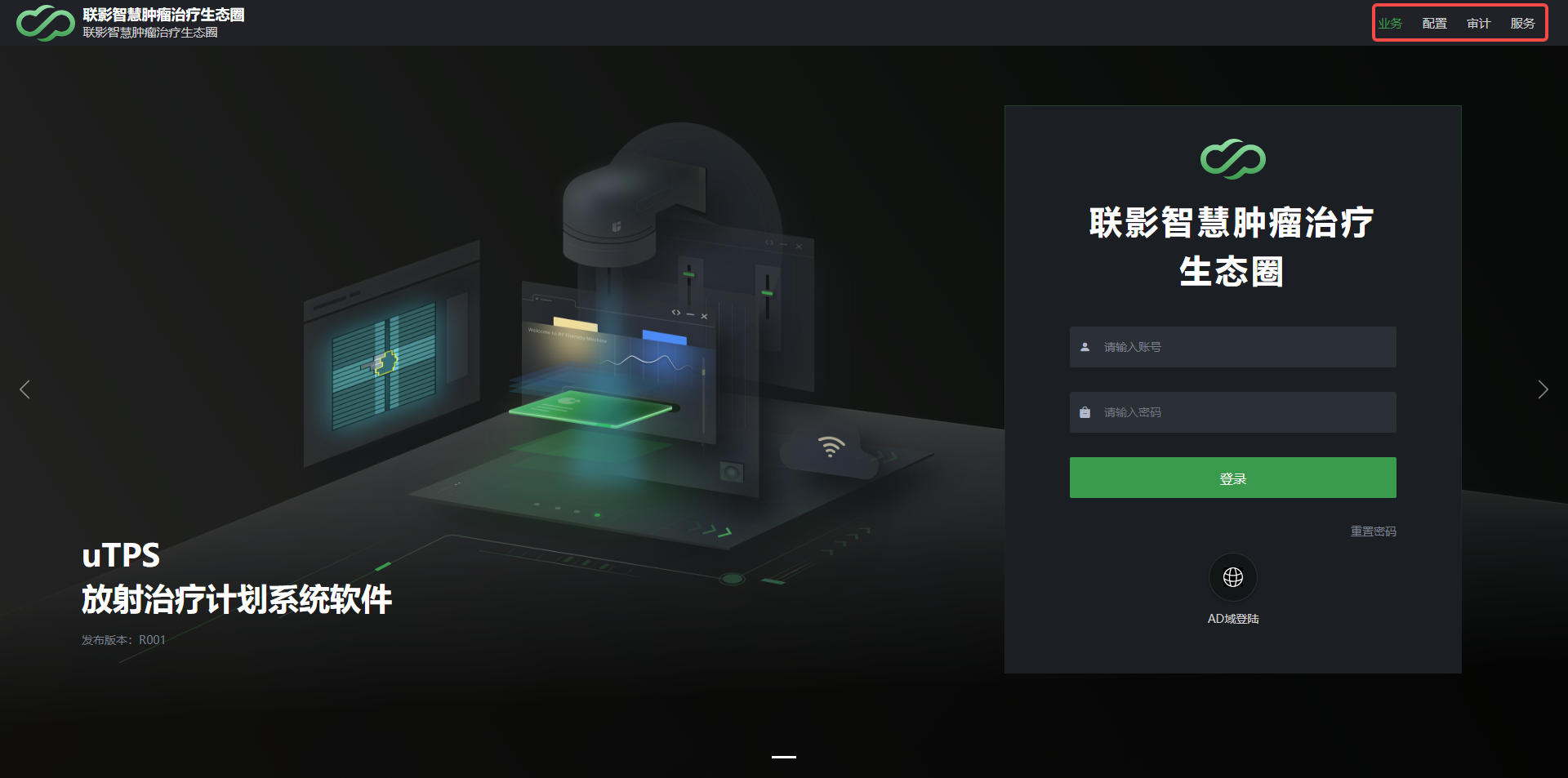 业务账号登录:医生/物理师/技师/护士等用户角色, 进入业务入口,输入正确的用户名和密码即可。