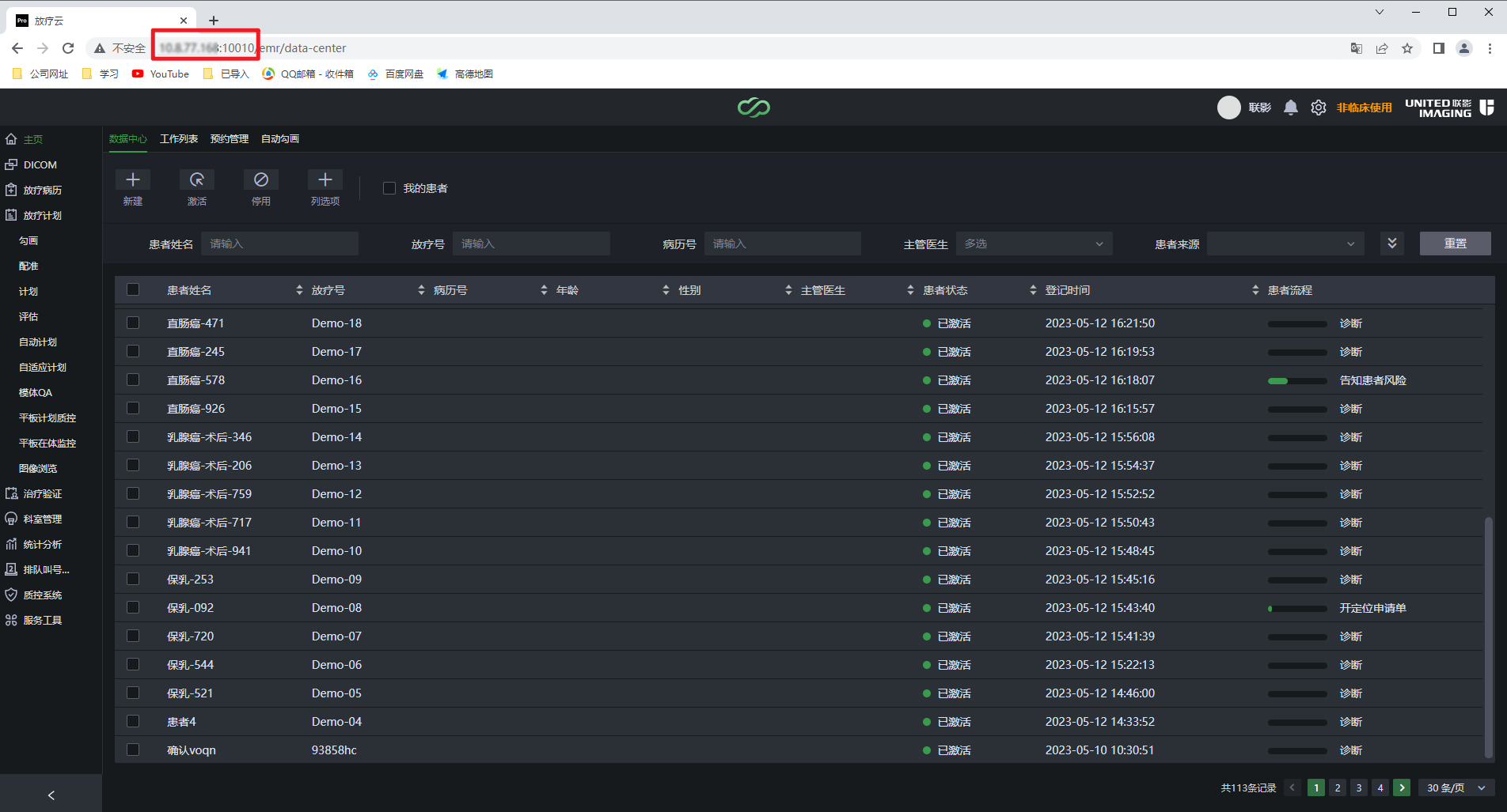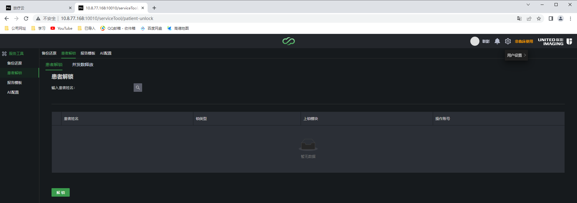 Note: 可将系统登录网址添加为标签或创建桌面快捷方式,便捷访问联影放疗云平台系统